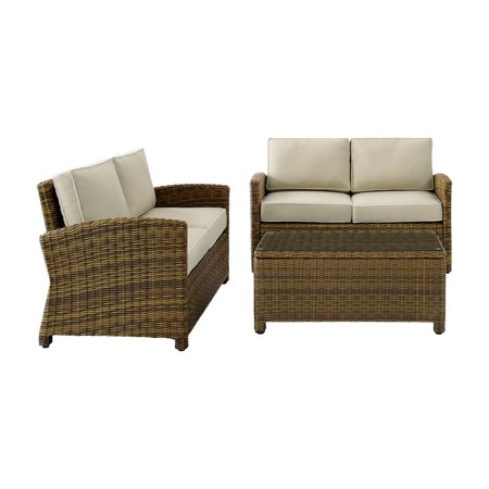 Crosley Furniture Bradenton 3 Piece Outdoor Loveseat Wicker Seating Set With Sand Cushions Loveseat Loveseat Coffee Table
