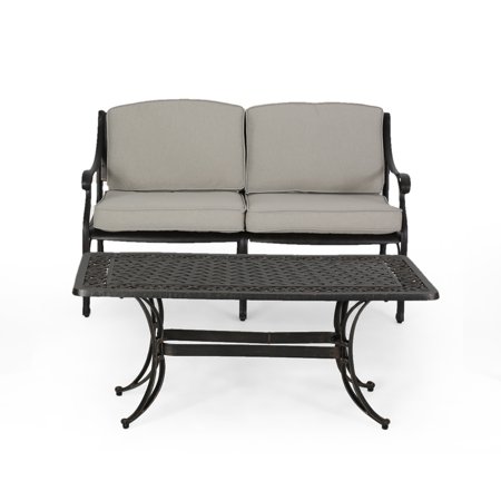 Cape Coral 2pc Aluminum Patio Loveseat Coffee Table Set Dark
