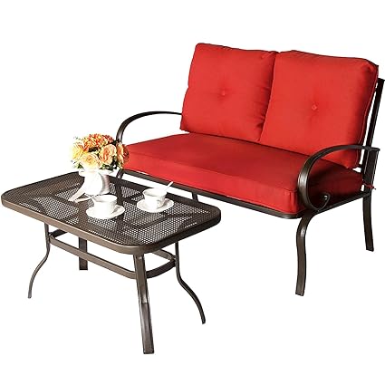 Details About Outdoor Loveseat Set Patio Bench Set Garden Sofa 2 Pc Cushioned Set Table Red