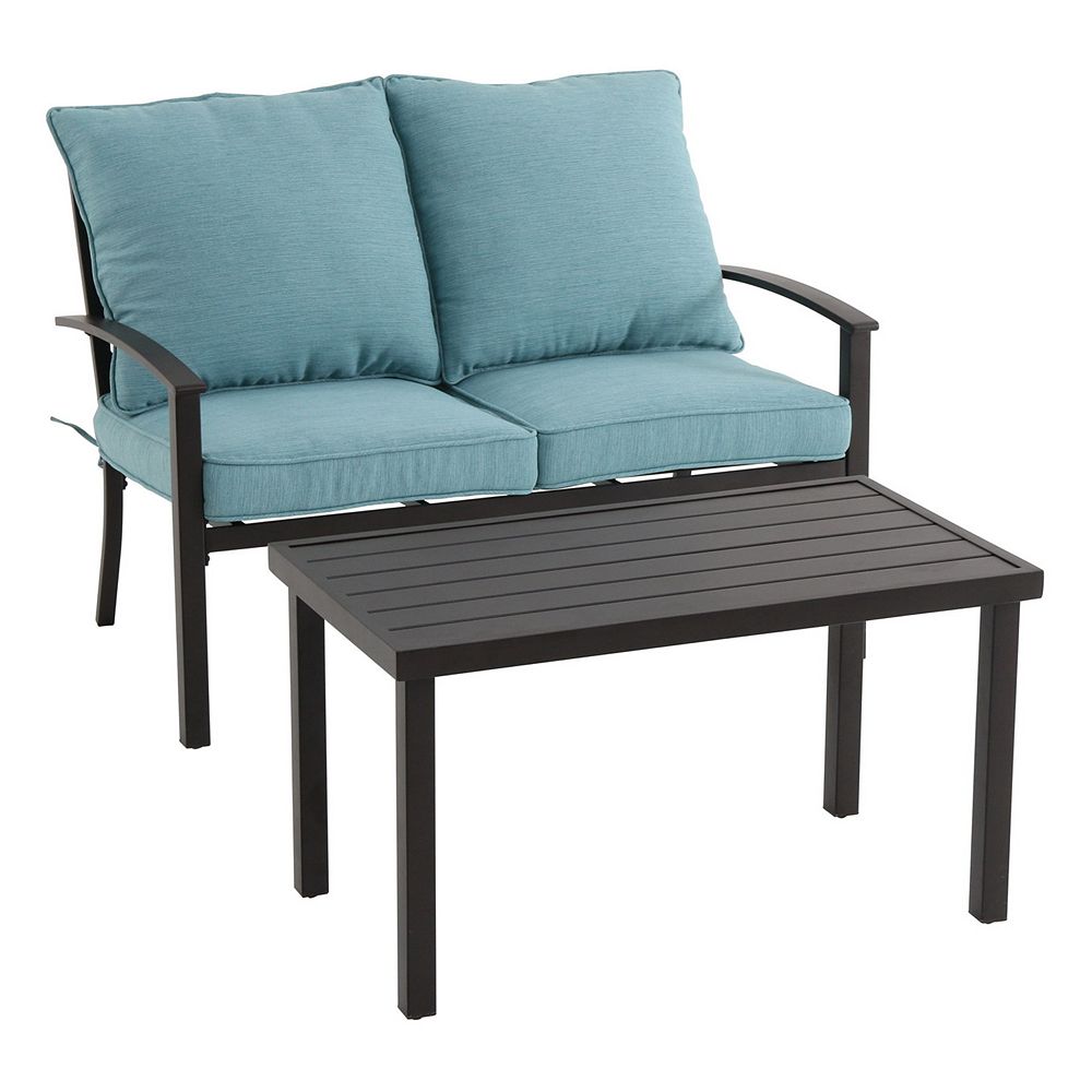 2 Piece Cascade Creek Black Steel Patio Loveseat And Coffee Table Set