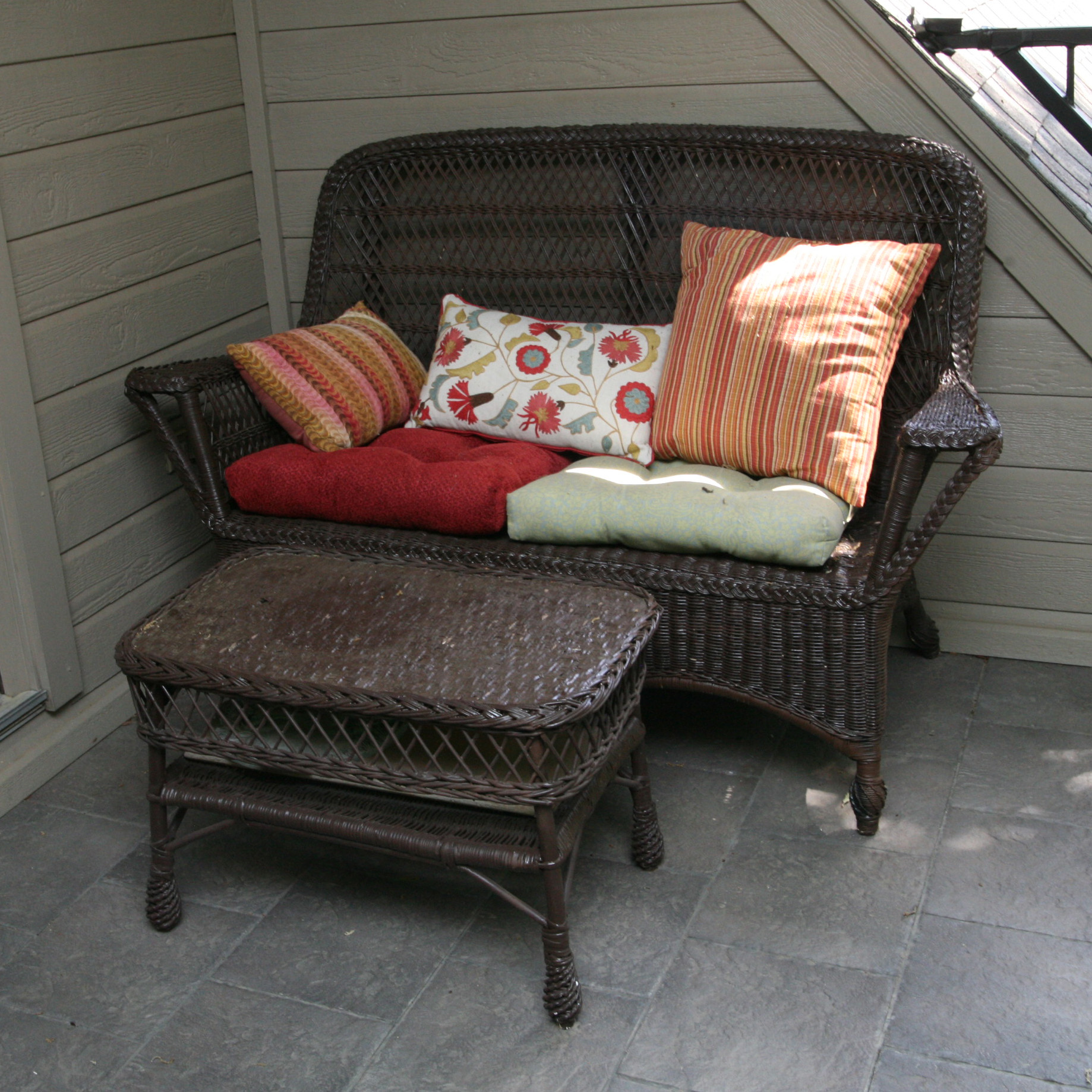 Wicker Patio Loveseat With Ottoman And Cushions