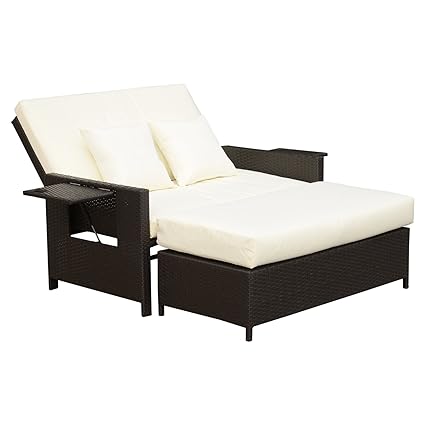 Outdoor Loveseat Daybed 2 Piece Rattan Resin Loveseat