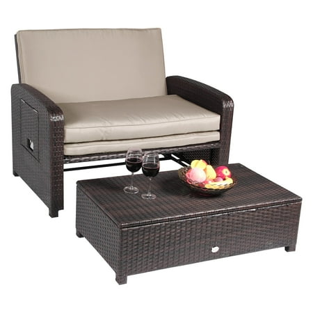 Cloud Mountain Wicker 2 Piece Patio Loveseat Daybed Set