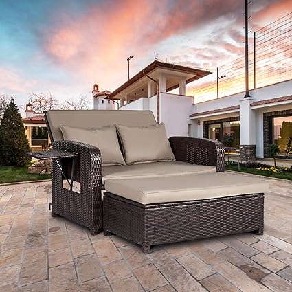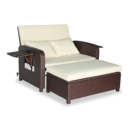 Amazon Com Yardwind Outdoor Loveseat Daybed Wicker Rattan