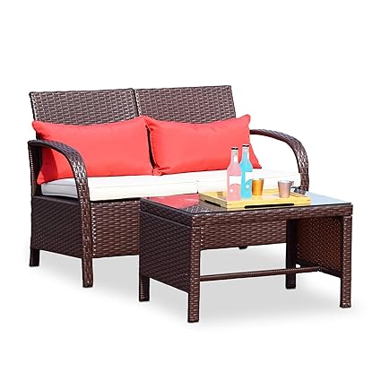 Best sellers in patio loveseats 1. Giantex 2 pcs patio loveseat with coffee table outdoor bench with cushion and metal frame. Product coral coast myles wicker outdoor loveseat and two armless chairs.