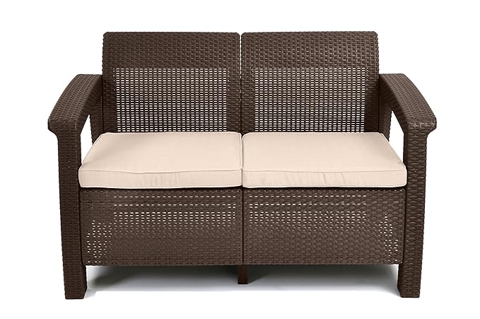 Details About Keter Graphite Resin Plastic Outdoor Loveseat Flanelle Cushions Patio Furniture