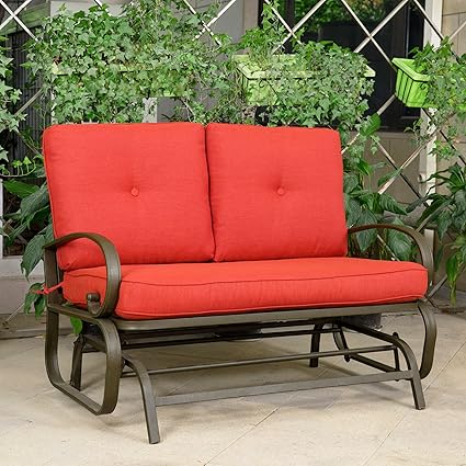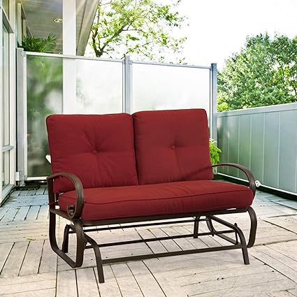 Cloud Mountain Patio Glider Bench Outdoor Cushioned 2 Person Swing Loveseat Rocking Seating Patio Swing Rocker Lounge Glider Chair Brick Red