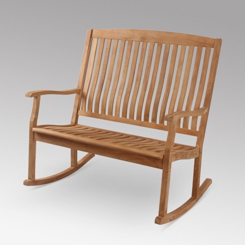 Cambridge Casual Heaton Teak Wood Outdoor Loveseat Rocking Chair