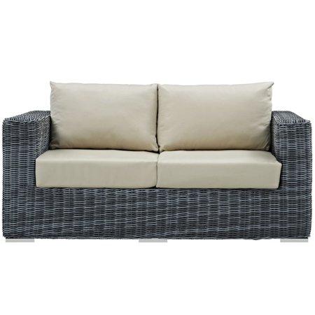 Modway Eei 1865 Gry Nav Summon Wicker Rattan Outdoor Patio Loveseat With Sunbrella Fabric Cushions Canvas Navy