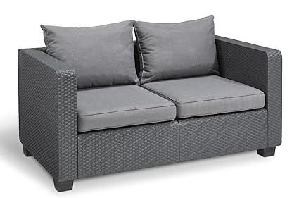 Keter Salta All Weather Outdoor Patio Furniture Loveseat 2 Seater With Sunbrella Cushions In A Resin Plastic Wicker Pattern Modern Graphite Cool Grey