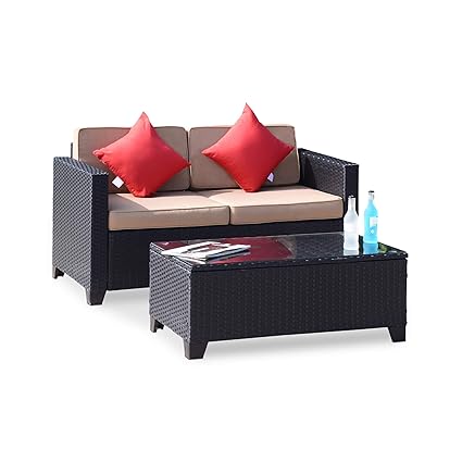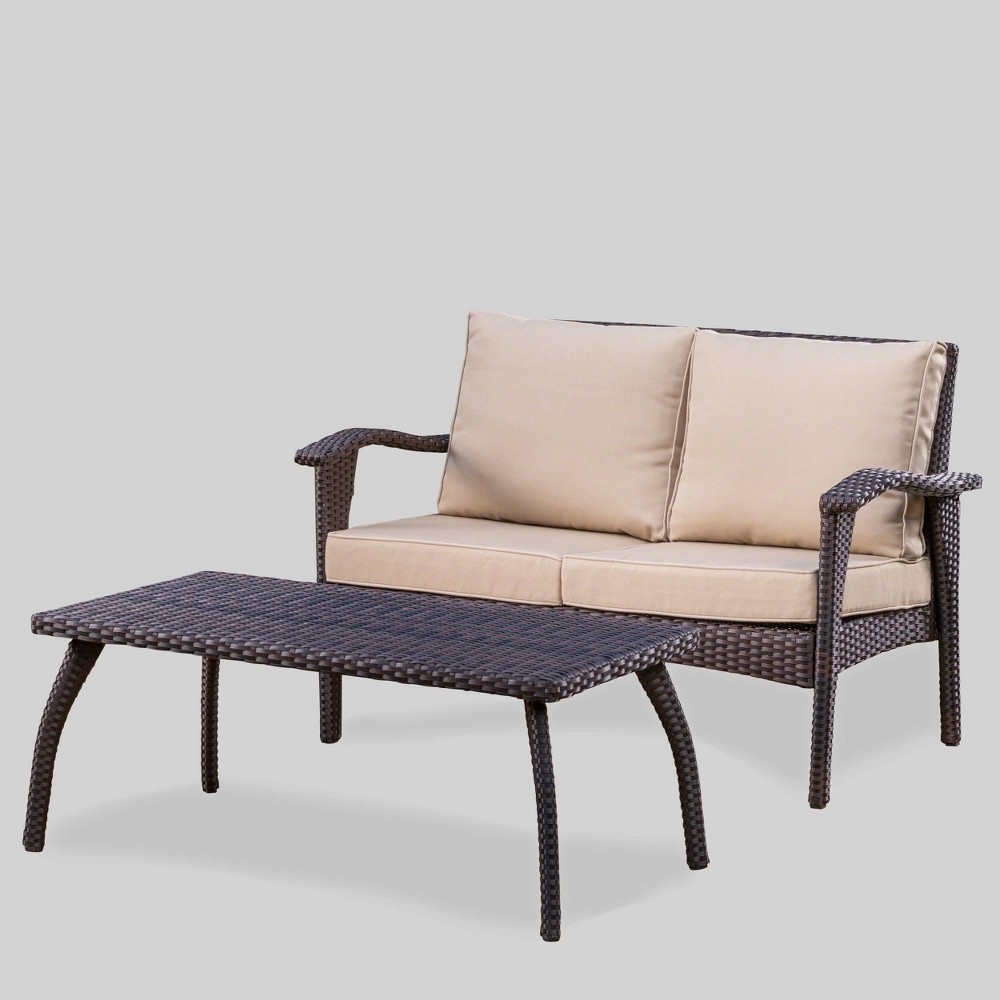 Big Deal On Sanger Outdoor Wicker Loveseat With Coffee Table