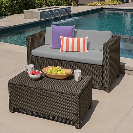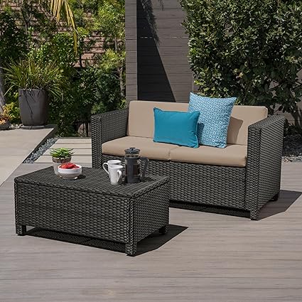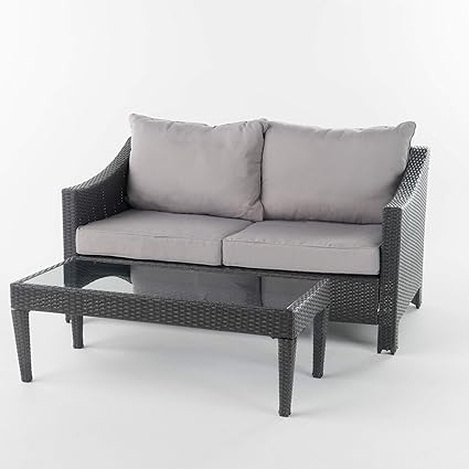 Christopher Knight Home Oceanus Outdoor Wicker Loveseat And Coffee Table With Tempered Glass Top By Christopher Knight Home Dark Gray Patio