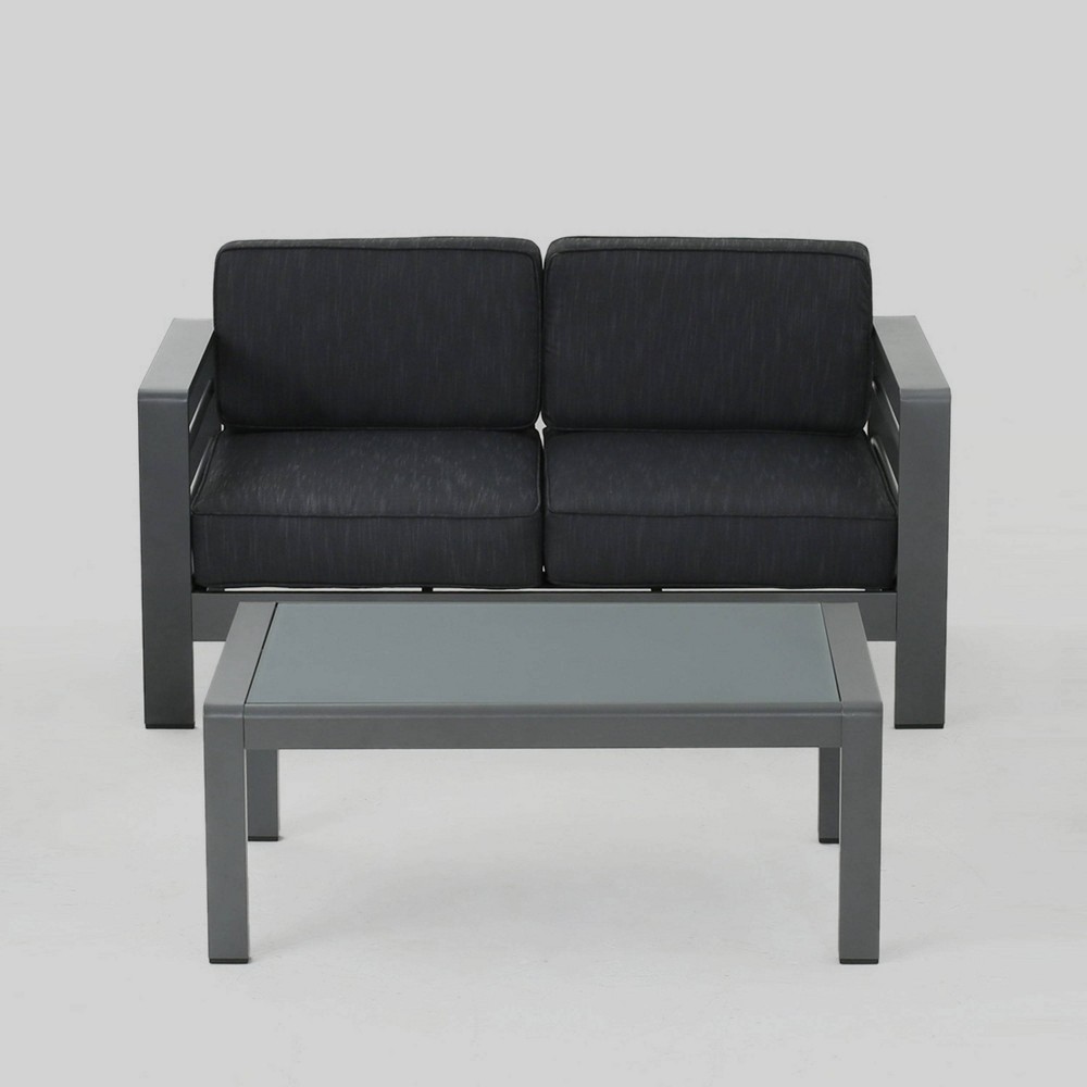 Cape Coral 2pc Aluminum Patio Loveseat Coffee Table Set Dark