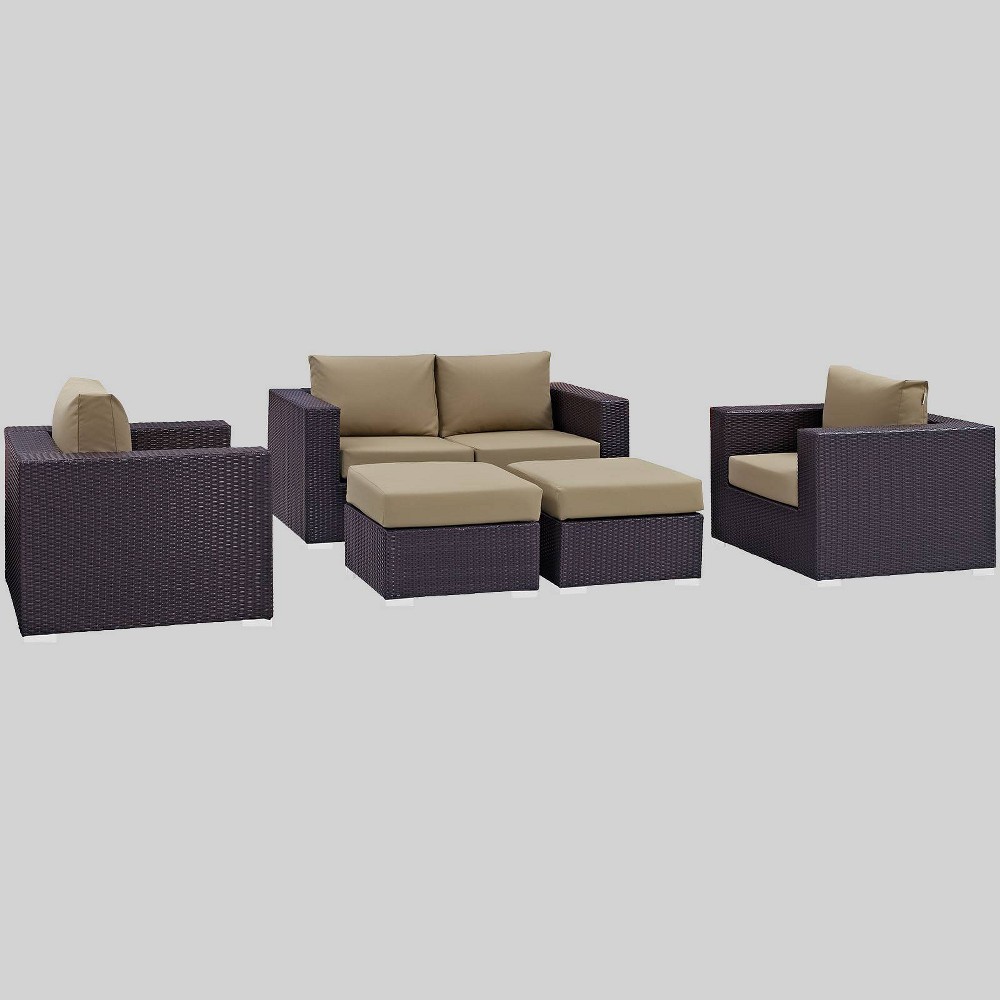 Convene 5pc Outdoor Patio Sofa Set Mocha Brown Modway