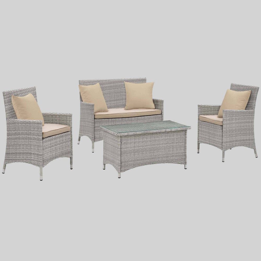 Bridge 4pc Outdoor Patio Conversation Set With Pillows Beige