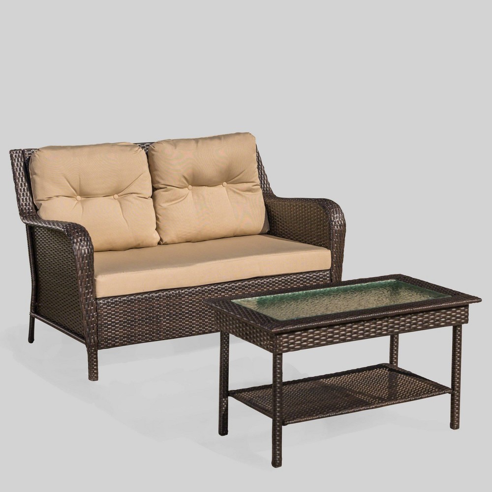 Savone 2pc Wicker Loveseat And Coffee Table Set Browntan